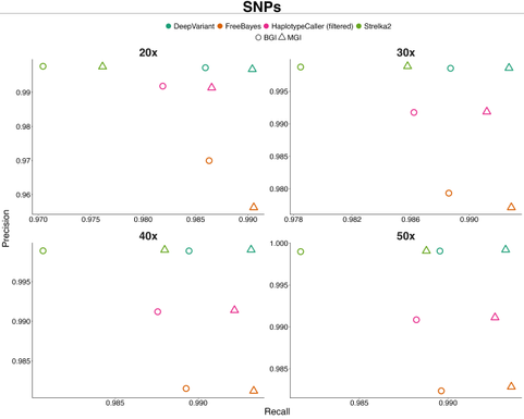 We benchmarked the germline track with Illumina, MGI, and BGI GiaB samples and the somatic track with Seq2C samples. We recently joined the NCBench effort to continuously validate the pipeline on release.